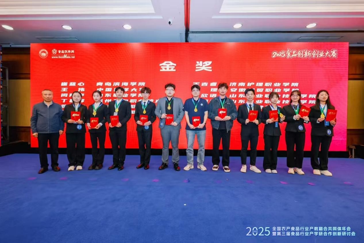 11月16日,山商食品食品赛中由全国农产食品行业产教融合共同体、职院总决斩获烟台富美特信息科技股份有限公司(食品伙伴网)主办的学生“2025食品创新创业大赛”总决赛圆满落幕。山东商业职业技术学院斩获金奖2项,伙伴银奖1项。网杯本次参赛项目由食品工业系和重点实验室联合指导,创新创业多名食品工业系学生分别组队。大赛